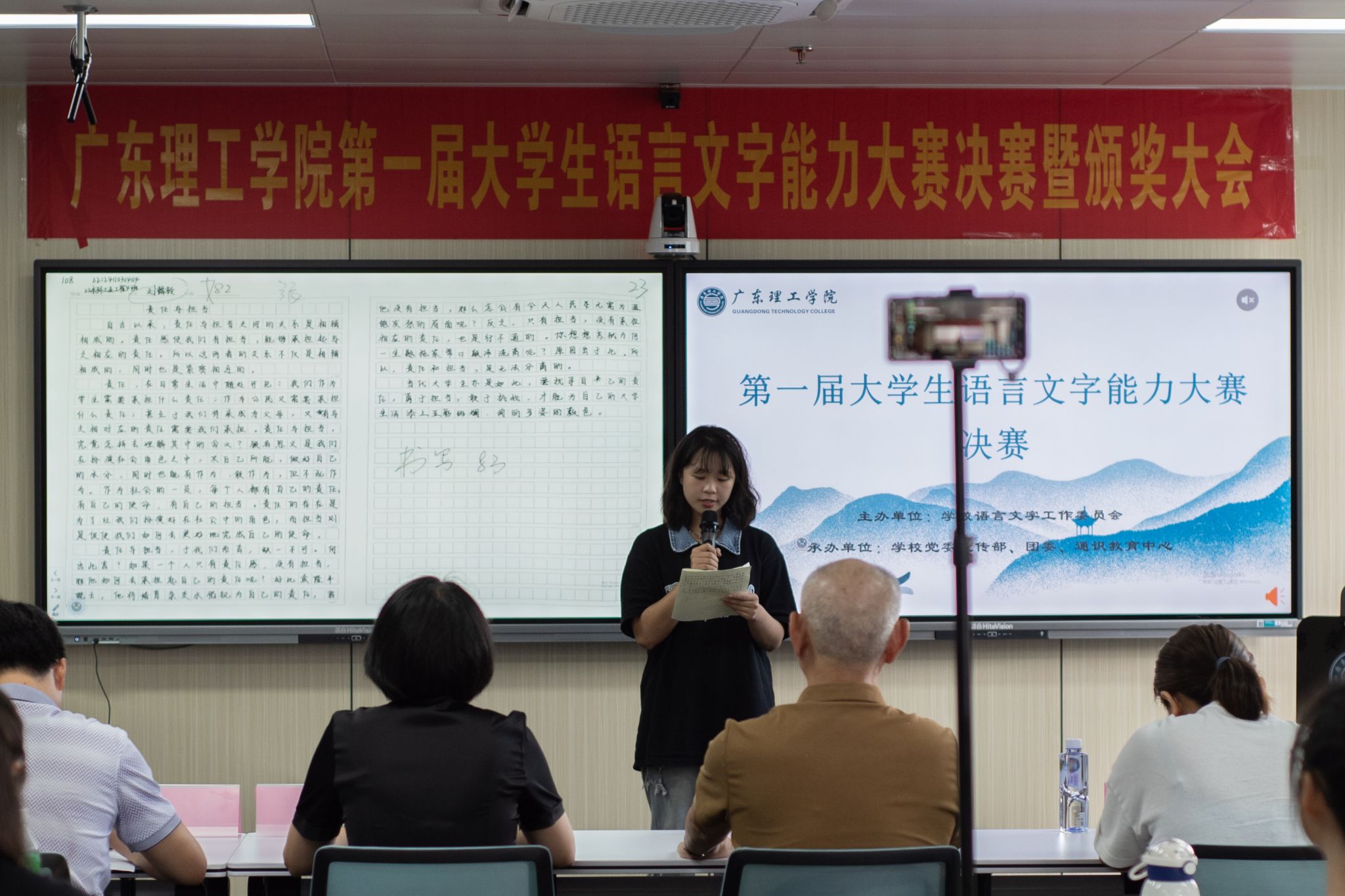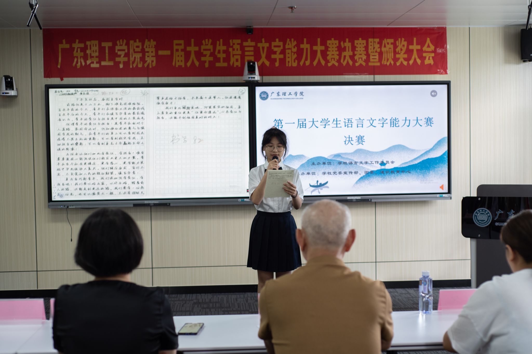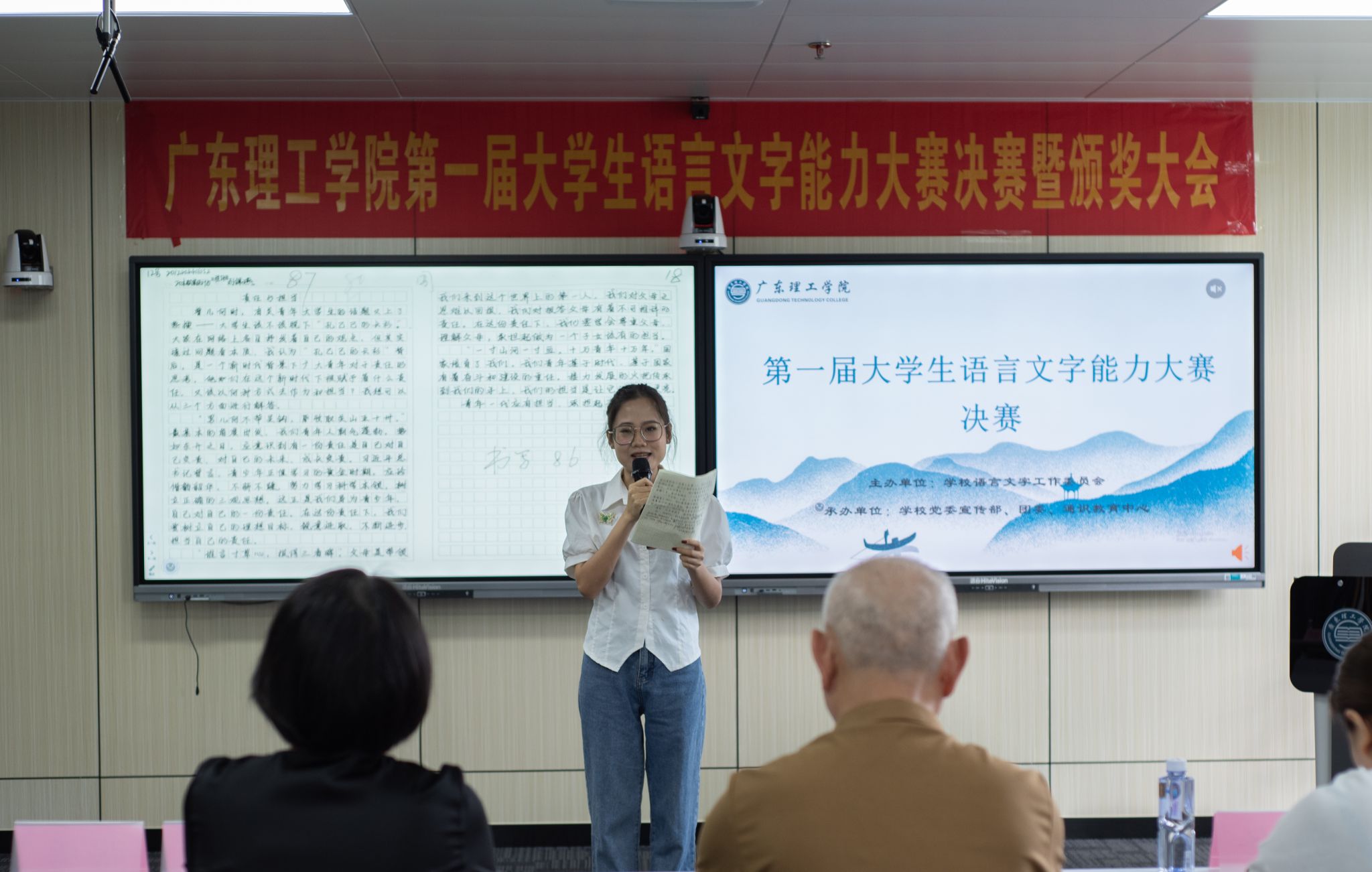 雅言传承文明,经典浸润人生。大学生语言文字能力大赛以提高我校大学生的文化知识水平、弘扬中华民族优秀传统文化为标准,意在测试大学生的语言文字知识和应用能力,增强大学生规范使用国家通用语言文字的意识,促进语言文字教、学、测协调发展。2023年3月,发布了《yl8cc永利线路检测中心开展广东理工学院第一届大学生语言文字能力大赛的通知》后,广泛宣传、积极动员,得到了校领导的大力支持及全校学生的积极响应,参赛总人数达1千余人。比赛全程分为初赛、半决赛和决赛三轮,比赛形式包括命题试卷、硬笔字书法、命题写作以及普通话朗读四项,其中命题试卷重在考核基础语言文字知识,硬笔字书法重在考核汉字书写能力,命题写作重在考核语言文字应用能力,普通话朗读重在考核汉字语言朗读能力。