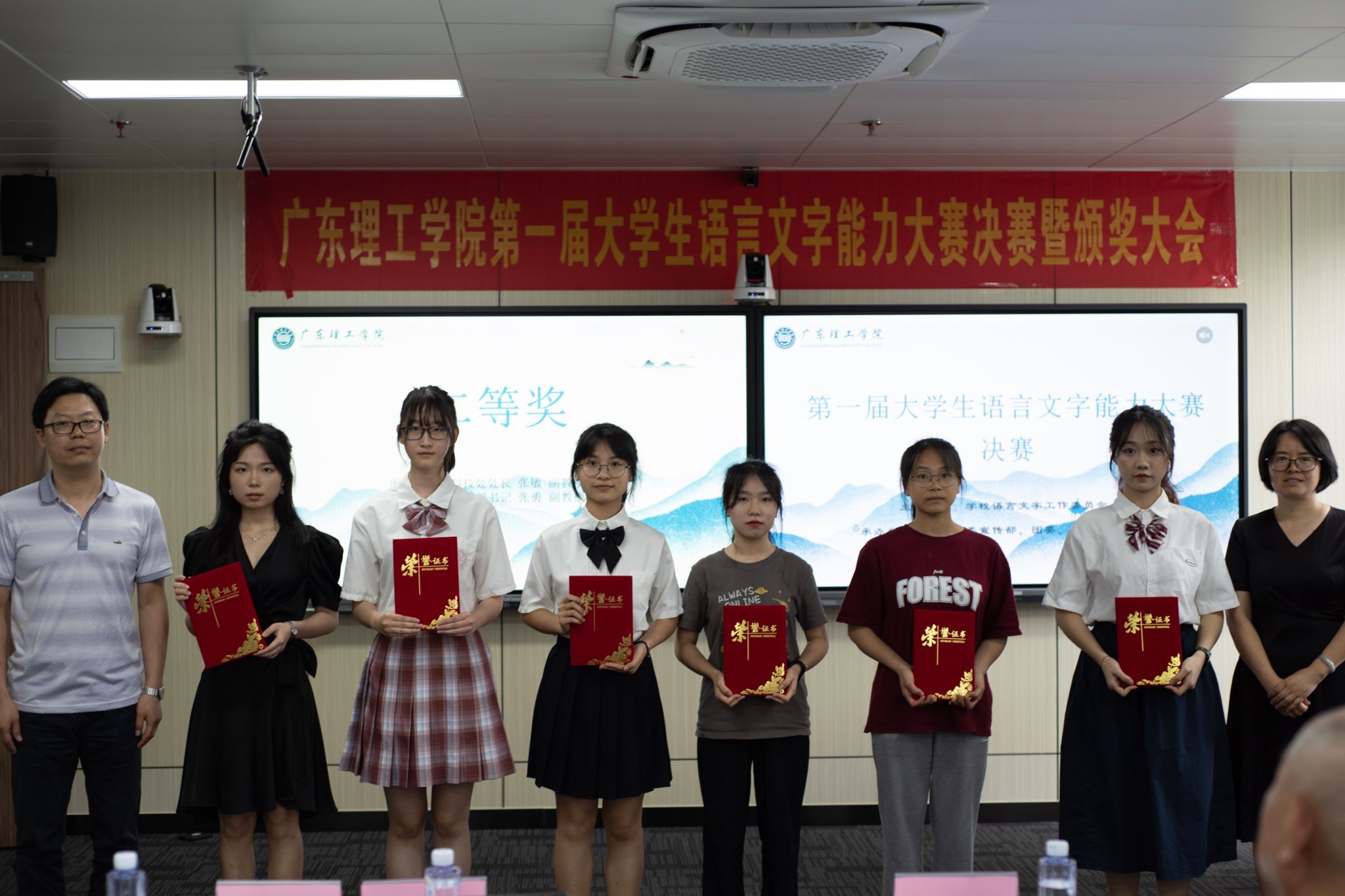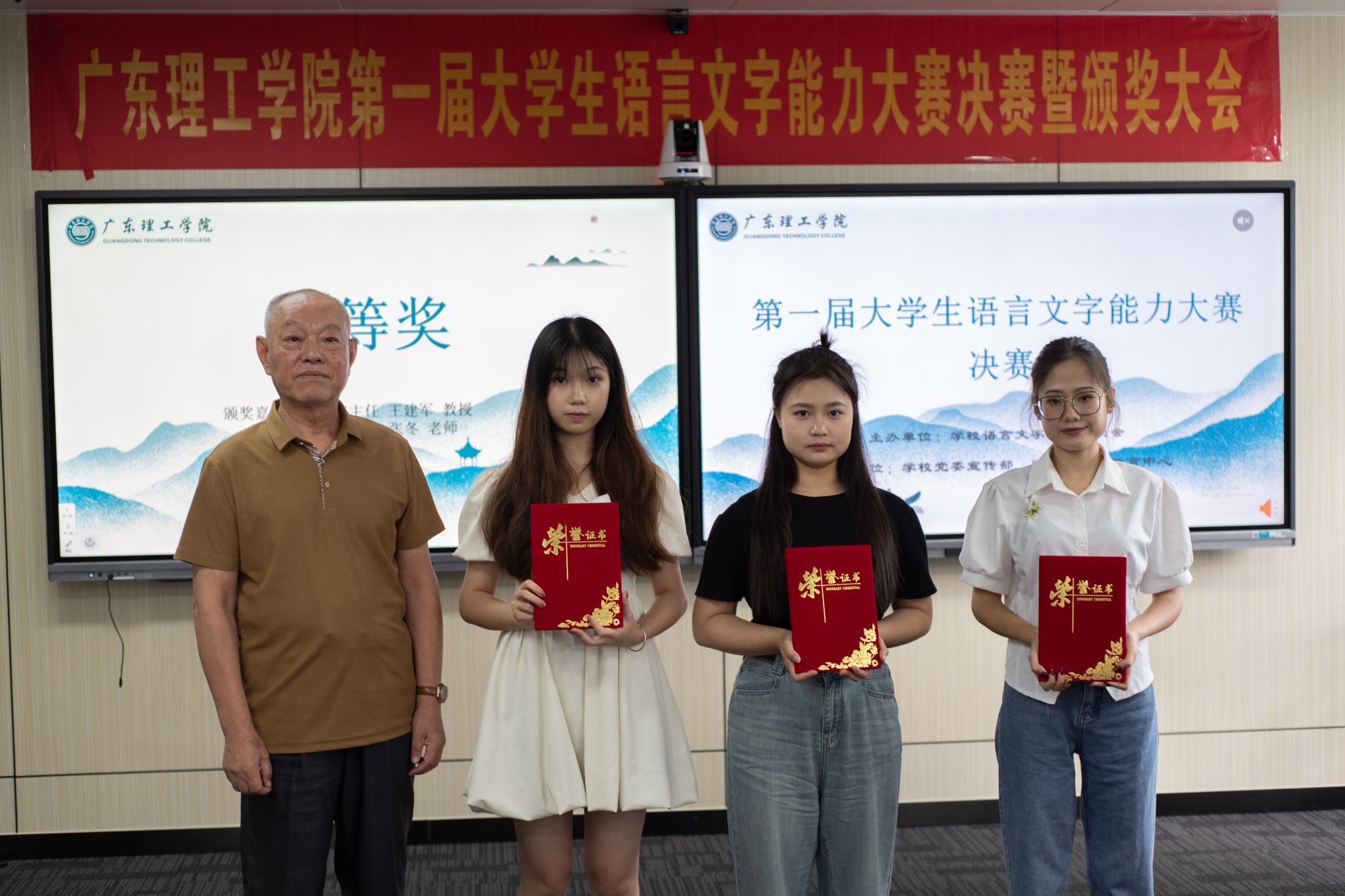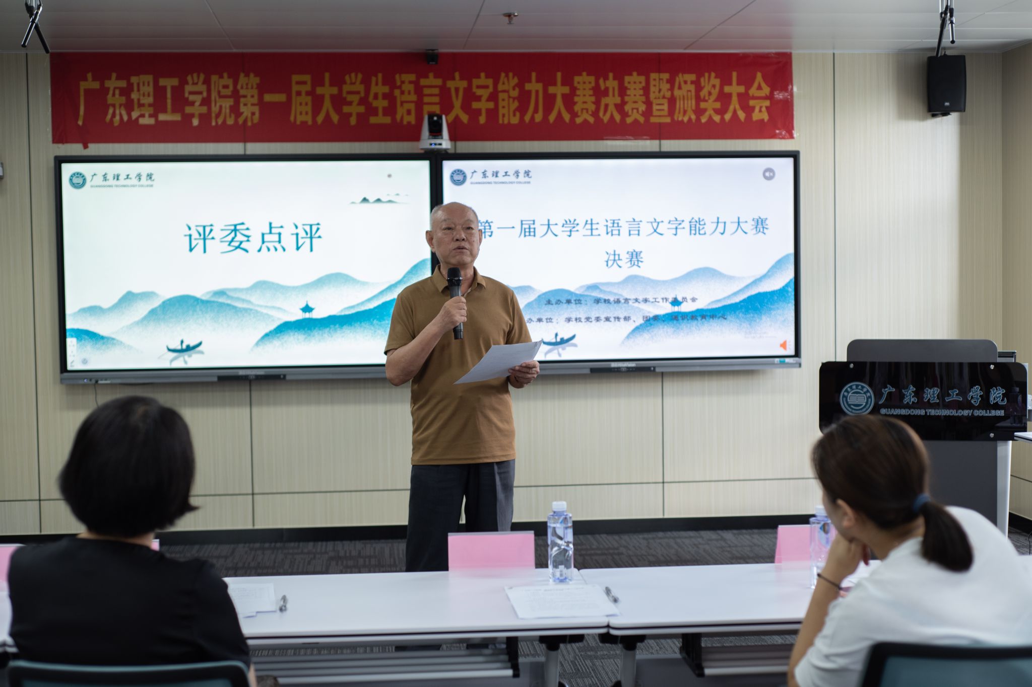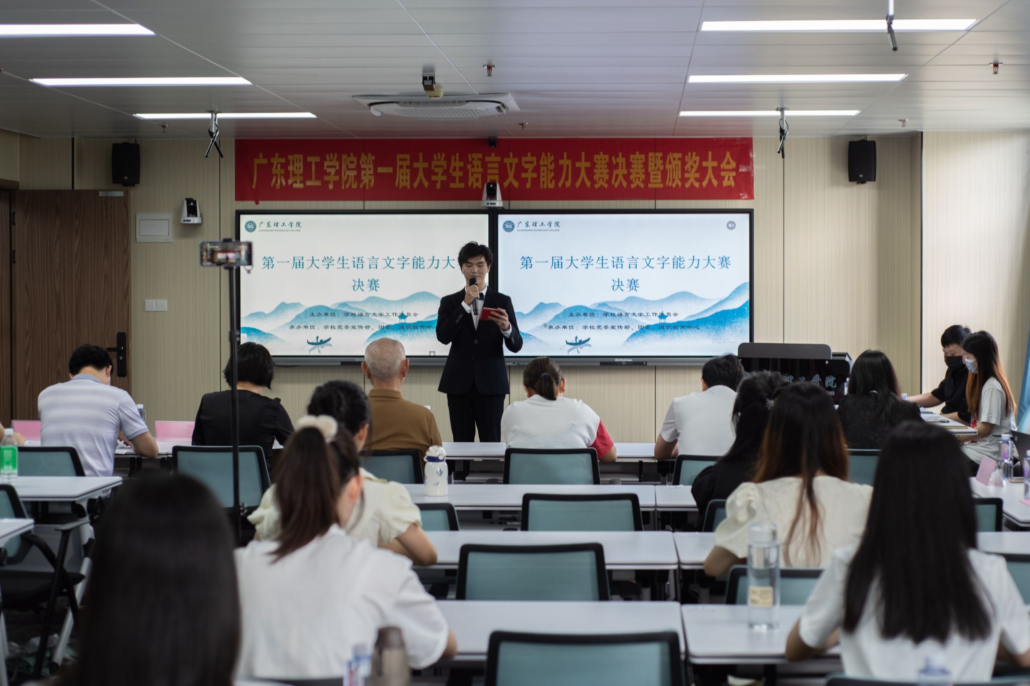 本网讯(yl8cc永利线路检测中心 但志慧)2023年5月26日,由学校语言文字工作委员会主办,学校党委宣传部、团委和yl8cc永利线路检测中心共同承办的广东理工学院第一届大学生语言文字能力大赛决赛暨颁奖大会圆满落幕。本次大赛邀请督导室主任王建军、宣传部部长张冬、科技处处长张敏、基础部书记张勇、基础部副教授蔡星灿、yl8cc永利线路检测中心教师骆叶和刘安琪担当决赛评委,并为获奖选手颁奖。