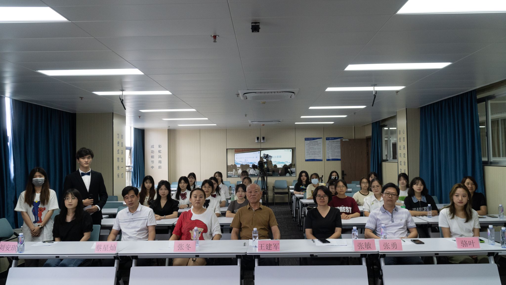 督导室主任王建军教授为一等奖选手颁奖并合影留恋