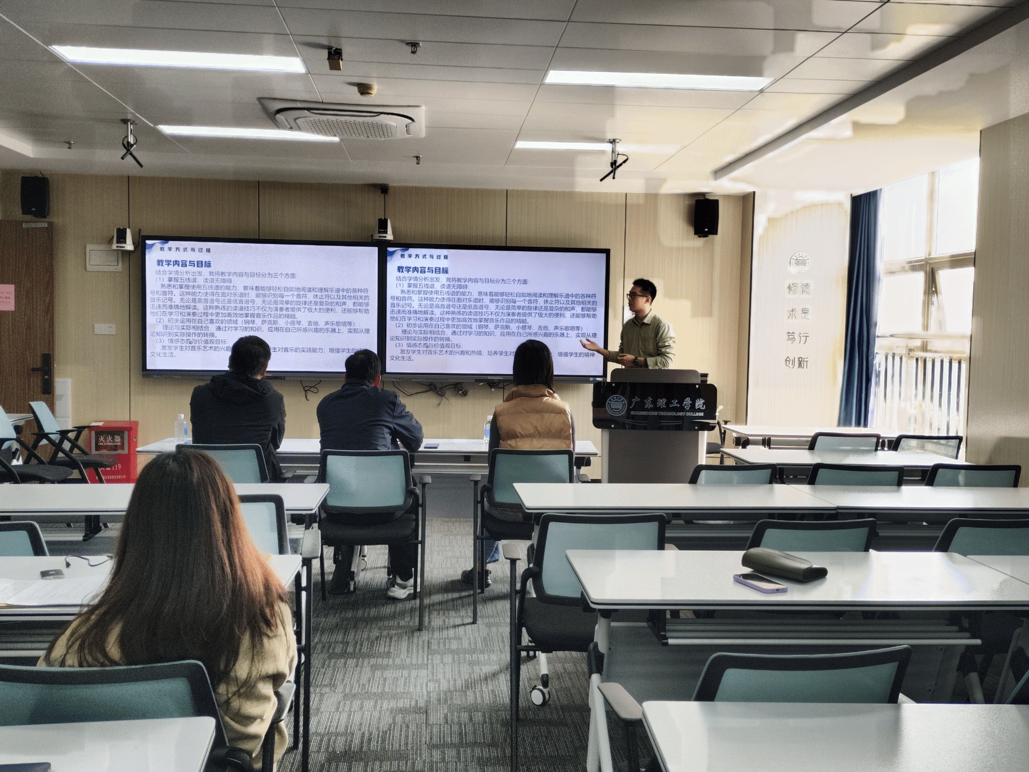 11位新教师围绕各自即将承担的课程内容,进行了全面而细致的说课展示。他们不仅阐述了对课程大纲的深刻理解,还分享了教学目标设定的逻辑依据、教学内容的创新整合思路,以及如何通过多样化的教学方法和手段来满足不同学生的学习需求,确保教学要求的有效达成。每位教师的说课结束后,现场评委都给予了积极的反馈和建设性的建议,形成了良好的教学交流与研讨氛围。